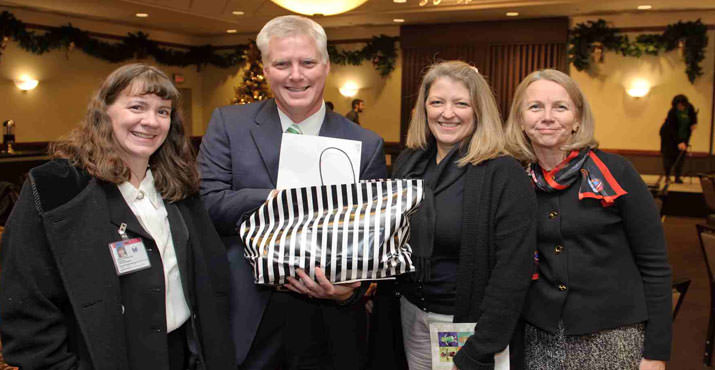 Portland, December 2nd. The 12thannual Quilt Luncheon and Auction to benefit Child Abuse Response and Evaluation Services (CARES) Northwest was held at the Multnomah Athletic Club. Carla Harris R.N., CAO of Randall Children’s Hospital at Legacy Emanuel is pictured with Lisa DeHarrport and LuAnn Rukke, who created the Garden of Peace quilt in the background. Carla Harris purchased this quilt to hang in the new Randall Children’s Hospital, opening in Feb. 2012. (Photos by Andie Petkus)
