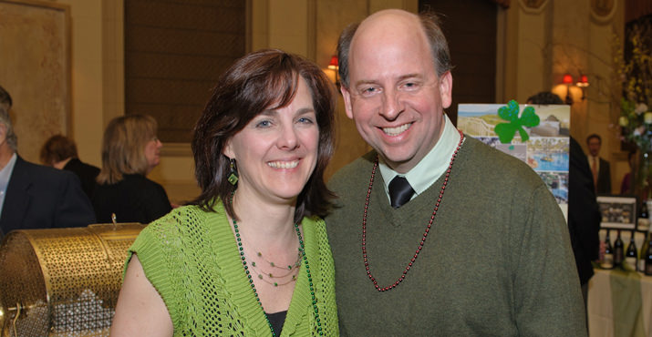 Thomas A. Edison High School students Sophie Bottom and Michael Kilpatrick show their St. Patrick’s Day spirit while volunteering at the Brilliance Benefit.
