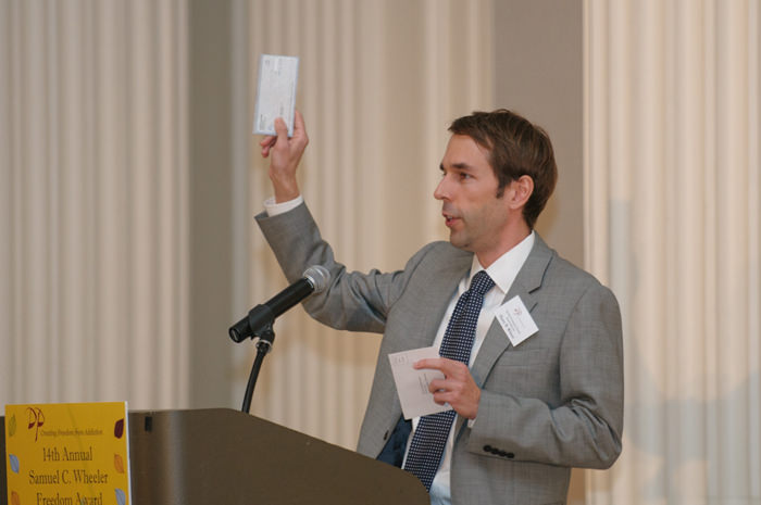 This year, the Freedom Award was renamed to honor Samuel C. Wheeler, a long-time supporter and friend of De Paul Treatment Centers and the first Freedom Award honoree. Sam Wheeler’s dedication to the recovery community and commitment to the De Paul Treatment Centers makes him a prime example of the traits the Freedom Award recognizes. Sam’s sons State Treasurer Ted Wheeler and Tom Wheeler spoke about their father at the event.