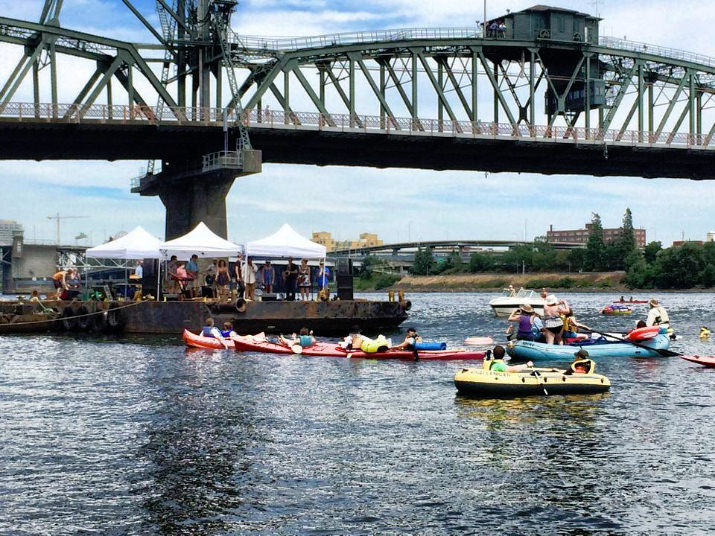 The idea behind TBF is that getting a large number of people in the water, in human-powered water vessels of all kinds, would be a powerful way to demonstrate that the Willamette is safe for swimming and human habitation.