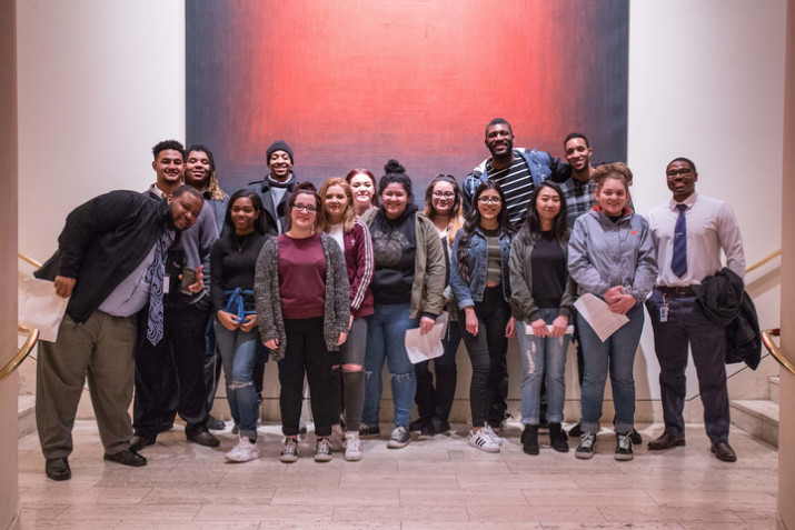 Portland, OR. Portland Trail Blazer players C.J. McCollum, Evan Turner and Festus Ezeli joined high school students from Roosevelt and Parkrose high schools for a tour of Constructing Identity: a Collection of African-American Art at the Portland Art Museum. The exhibit opened just in time for Black History Month and runs through June 18th. (Photo credit, Bruce Ely/Trail Blazers)
