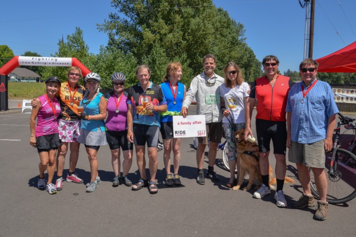 Mt. Angel, OR. The 2017 Ride to Defeat ALS raised $157,306, which was $7,000 over what organizers had set as a goal. Riders started out in Mt. Angel, Oregon and had five different rides they could select: a Century Ride (100 miles), Metric Century Ride (62 Miles), 50 Mile Ride, 25 Mile Ride, and a Family Fun Ride (3 miles). Over 200 riders hit the road for the July 8th event to support local care services, international ALS research and national public policy efforts. (Photo credit, Majestic Event Photography)