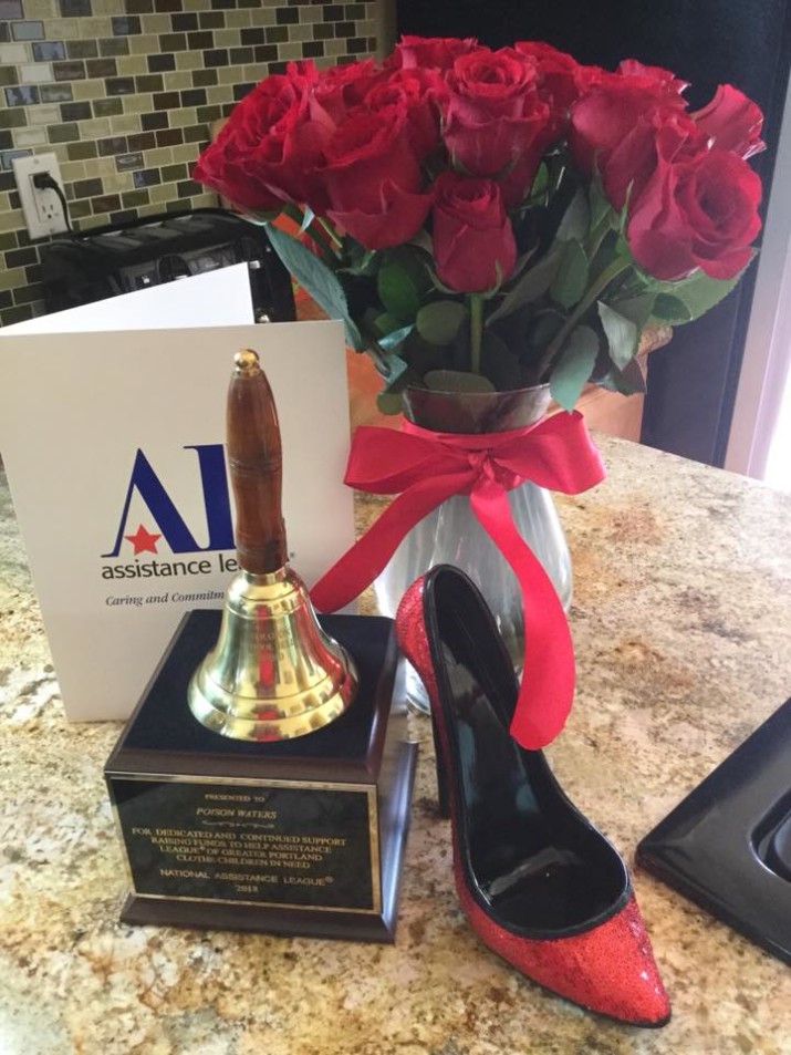 Portland, OR. Promenade Portland, Assistance League of Greater Portland’s fashion show, put the spotlight on local boutiques to a crowd of 345 guests at the Multnomah Athletic Club on April 9, 2018. Walking the runway were member volunteers from the nonprofit and its Advisory Council. Dressed in a spring floral dress, local entertainer Poison Waters was front and center – the emcee for the event. Another highlight of the event was the presentation of the national Operation School Bell® Award, the recipient being the emcee, Poison Waters. This award is to honor someone in the community who, through significant financial, in-kind or service support, have had a direct, powerful and positive effect on Operation School Bell.