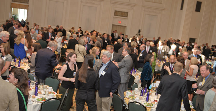 Portland, May 10th. More than 730 Portland business and community leaders gathered for the 2012 Friends of the Children Friend Raiser presented by KeyBank. Supporters raised over $1.42 million for the mentoring program transforming the lives of Portland’s vulnerable children. Melvin ‘Pete’ Mark Jr., Melvin Mark Brokerage, and Bobbi O’Neill, Friend Raiser Steering Committee member, walk through the ‘high-five tunnel’ to enter the live auction tent.