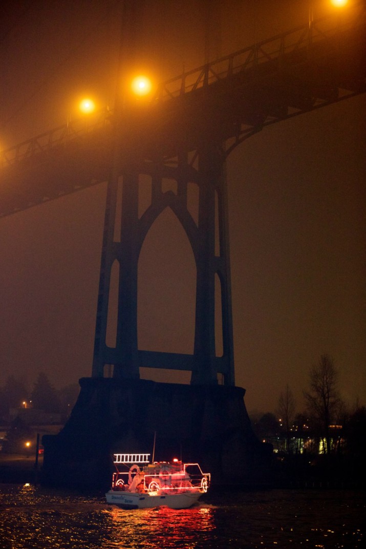 At 5:00PM, the Willamette and Columbia Fleets assemble in front of RiverPlace Marina, (1750 SW Harbor Way, Portland). The parade will begin in the OMSI/Riverplace area and proceed upstream to the Spaghetti Factory before heading downriver to St. John’s arriving at approximately 6:30 PM and remain in the area for about 30 minutes. The parade will then continue on to the Columbia River and each boat owners home port. The arrival times are dependent upon bridge openings that are beyond the control of the Christmas Ships. Please check our Twitter feed for updates to our time and location.